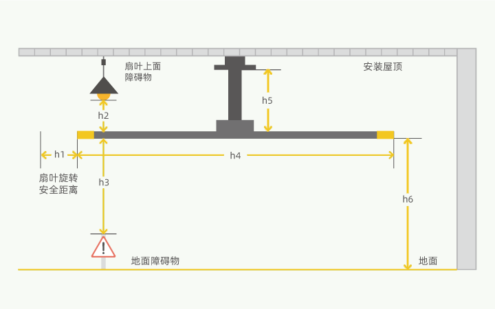 H1扇叶旋转安全距离 h1 ≥ 0.2 米